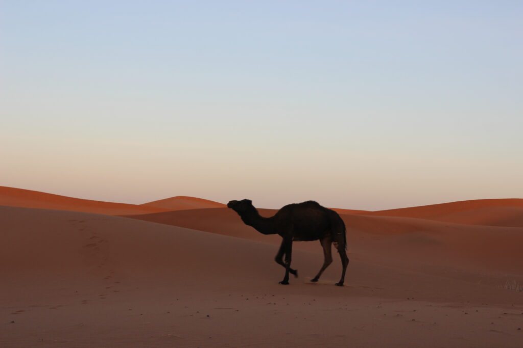 Embark on an unforgettable desert adventure with our “Chegaga Dunes” 4-day expedition. Join us as we pick you up from your accommodation in M’Hamid and introduce you to your companions for the journey: the camels and our knowledgeable tour guides from local nomad families. They will lead you through the vast and timeless beauty of the Sahara, revealing its hidden treasures.